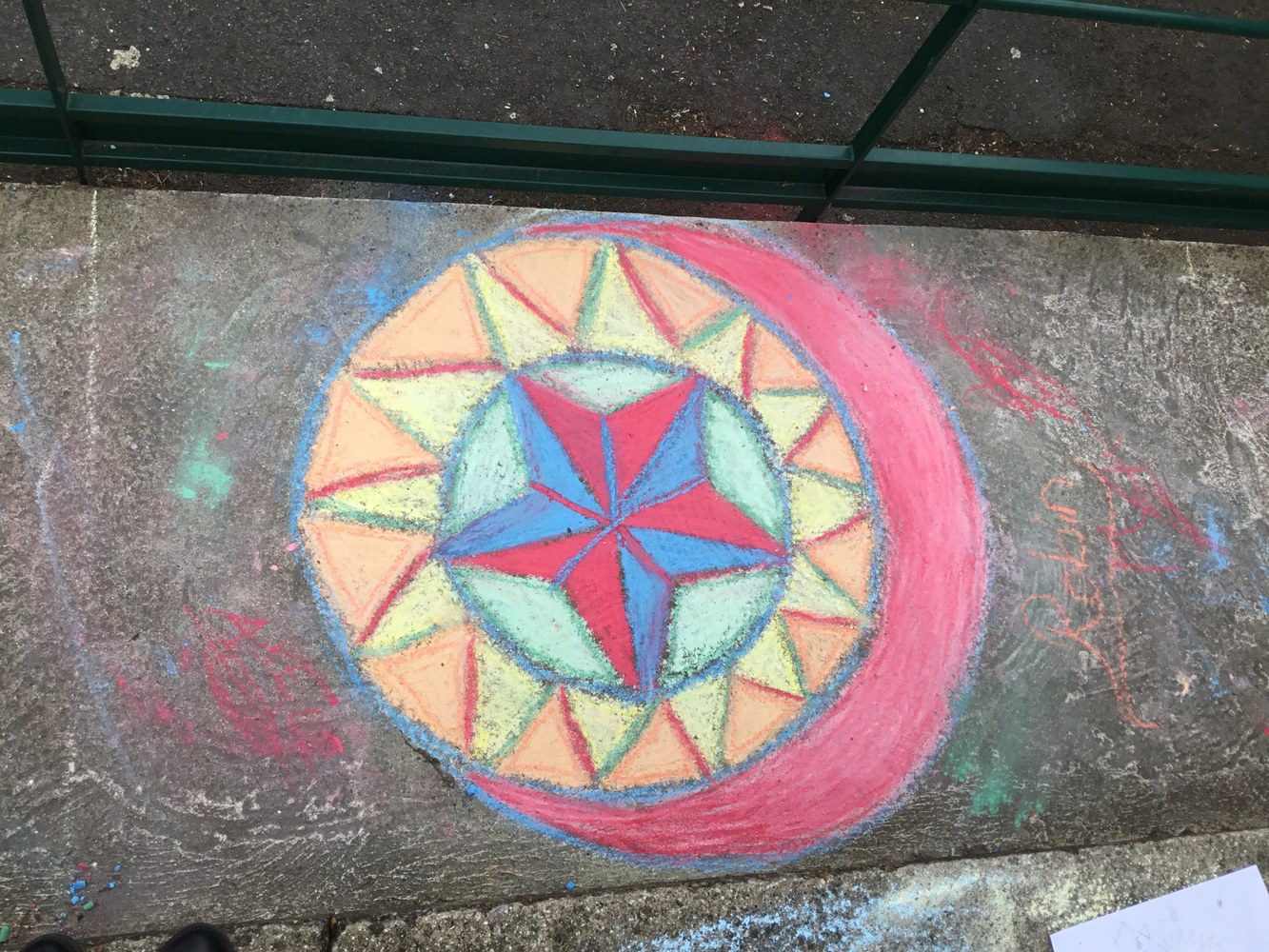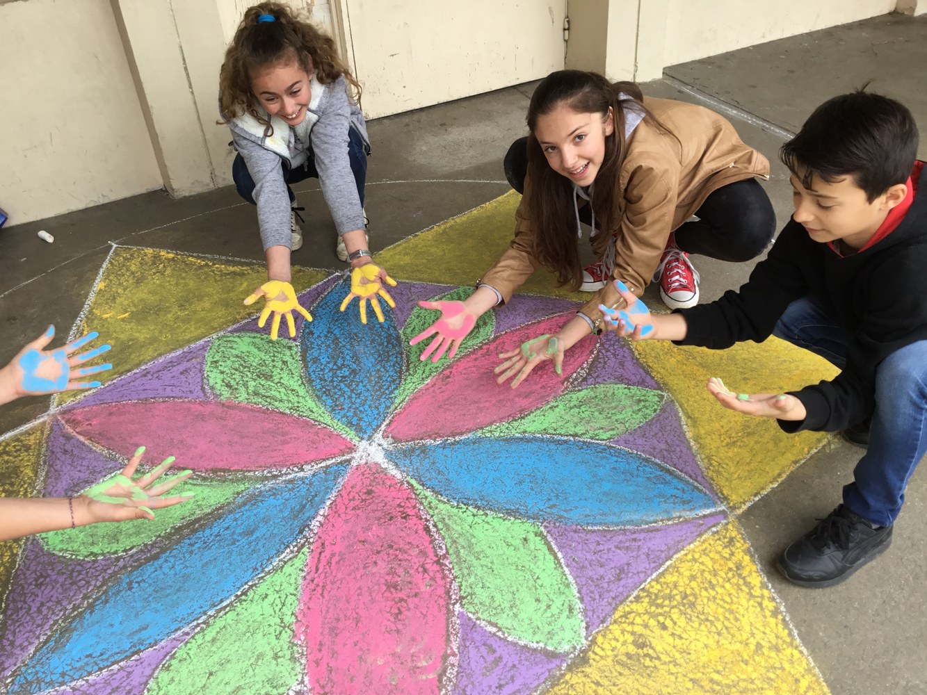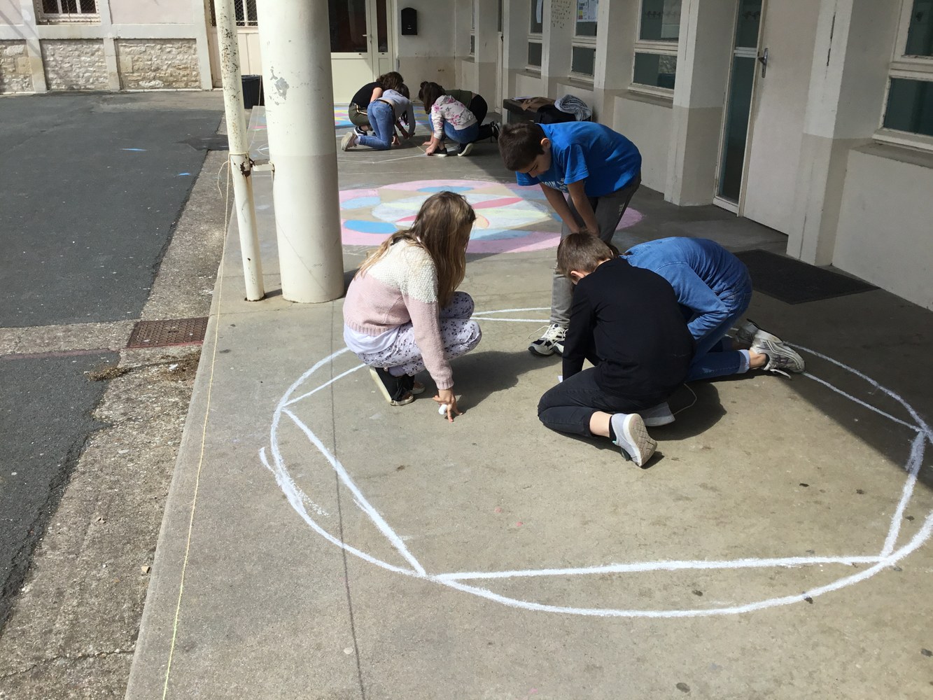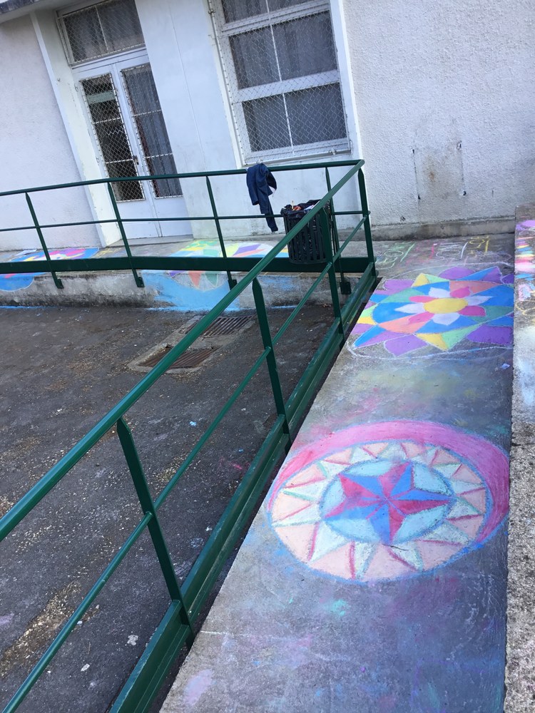 Pendant la semaine de découverte, du 8 au 12 avril, les 2 classes de 6ème ont participé à un atelier "Kolam" (dessin éphémère originaire du sud de l'Inde). Pour continuer l'opération commencée en janvier 2019 « Tamil Nadu et nous » (qui a abouti au parrainage d'une famille du sud de l'Inde pendant un an), les 2 classes de 6ème ont participé le mardi 9 avril à un atelier « Kolam ». Le Kolam est un dessin tracé à même le sol avec de la poudre de riz et des poudres de couleur à l'entrée des maisons en Inde du sud, en guise de bienvenue. Les élèves ont brillamment relevé le défi proposé par leur professeure de mathématiques et réalisé de superbes œuvres éphémères sur l'ensemble de la cour. Ils n'ont pas manqué de faire le lien avec le tricentenaire de la mort de notre créateur, saint Jean-Baptiste de La Salle, et ont également tracé une belle étoile lasallienne. Bravo pour tous ces talents !