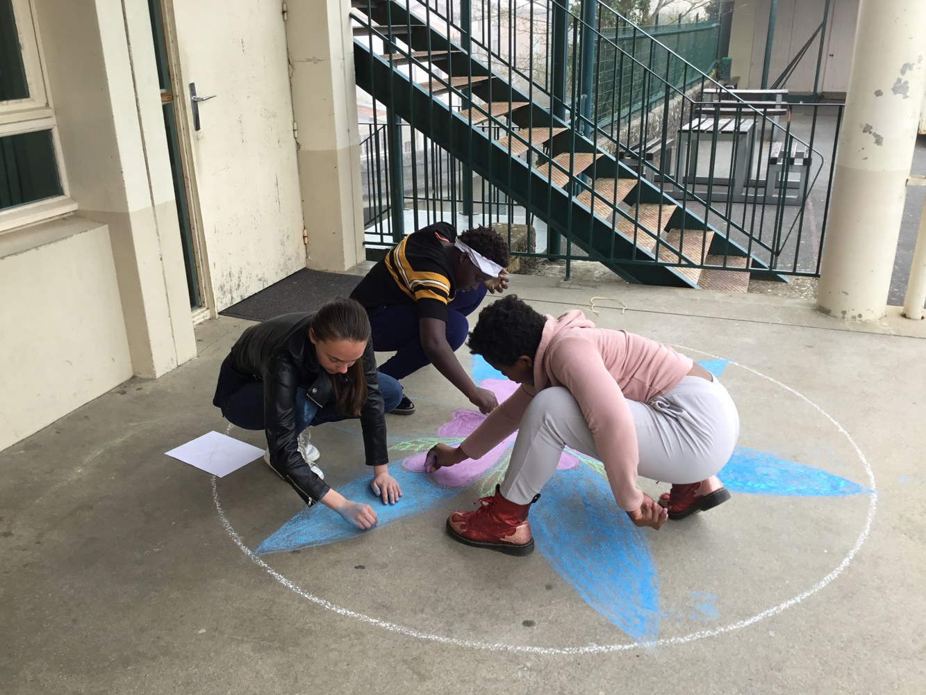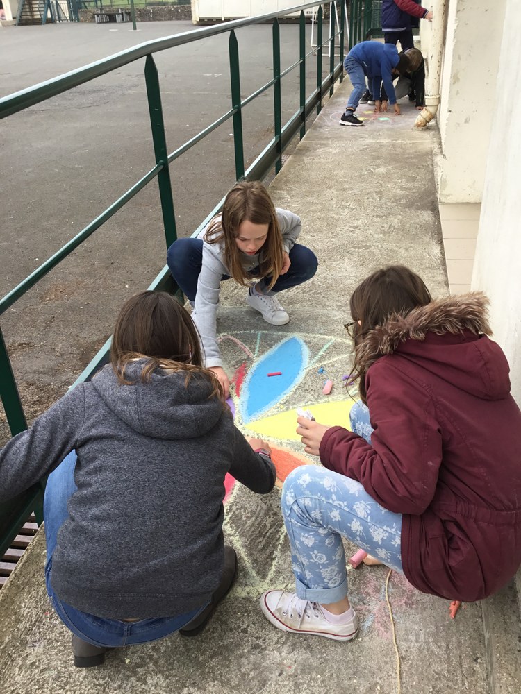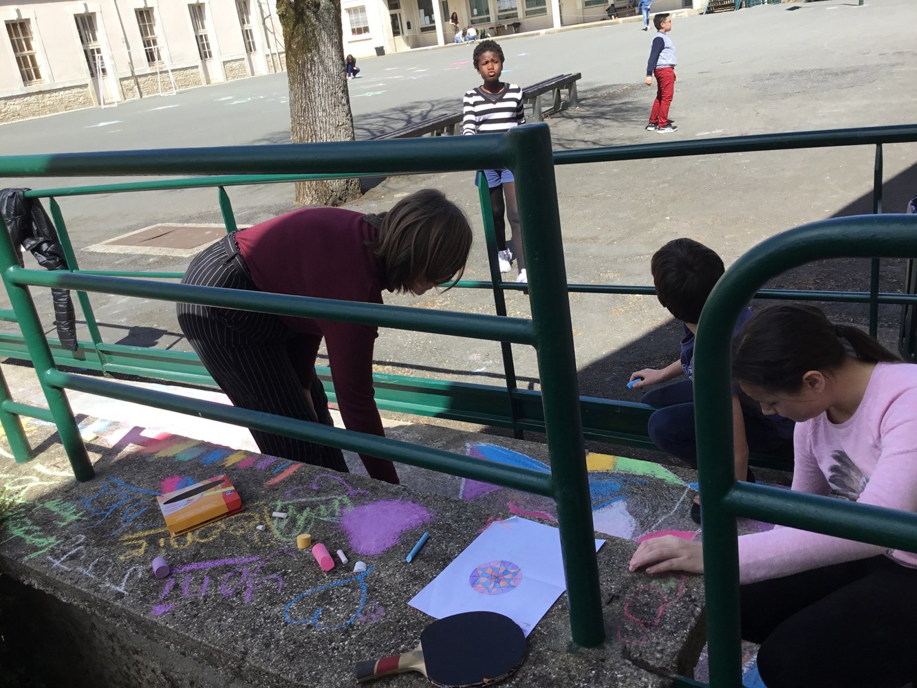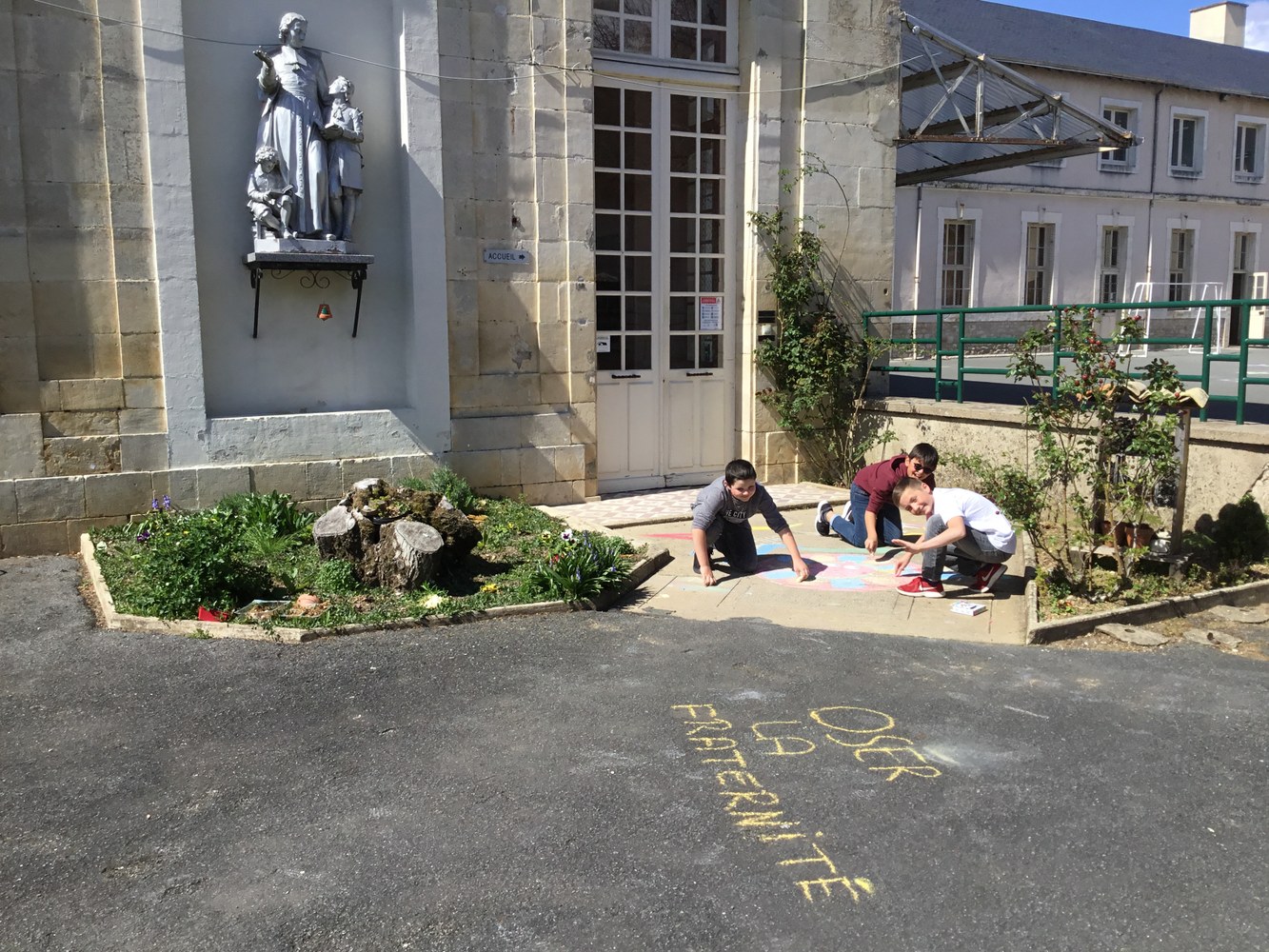 Pendant la semaine de découverte, du 8 au 12 avril, les 2 classes de 6ème ont participé à un atelier "Kolam" (dessin éphémère originaire du sud de l'Inde). Pour continuer l'opération commencée en janvier 2019 « Tamil Nadu et nous » (qui a abouti au parrainage d'une famille du sud de l'Inde pendant un an), les 2 classes de 6ème ont participé le mardi 9 avril à un atelier « Kolam ». Le Kolam est un dessin tracé à même le sol avec de la poudre de riz et des poudres de couleur à l'entrée des maisons en Inde du sud, en guise de bienvenue. Les élèves ont brillamment relevé le défi proposé par leur professeure de mathématiques et réalisé de superbes œuvres éphémères sur l'ensemble de la cour. Ils n'ont pas manqué de faire le lien avec le tricentenaire de la mort de notre créateur, saint Jean-Baptiste de La Salle, et ont également tracé une belle étoile lasallienne. Bravo pour tous ces talents !